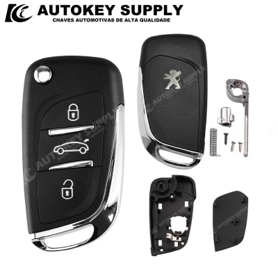 CARCAÇA DE CHAVE CANIVETE 3 BOTÕES MODIFICADOS PEUGEOT + SUPORTE DE BATERIA (LÂMINA SEM RANHURA)