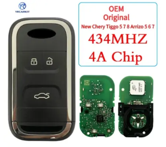 CHAVE DE PRESENÇA COMPLETA CHERY (Arizzo 5,6,7 Tiggo 5X,7X) 3 BOTÕES*FREQUENCIA 434 MHZ CHIP 4A