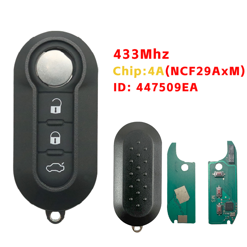 Chave Canivete Fiat* 03 Botões *Frequência:433 Mhz*Chip:4A(NCF29AxM)*ID:447509EA